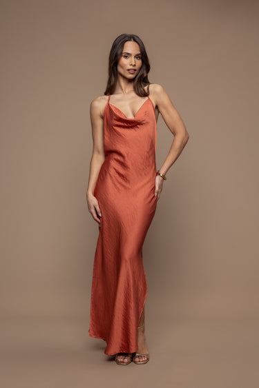 Vestido de gala de terracota